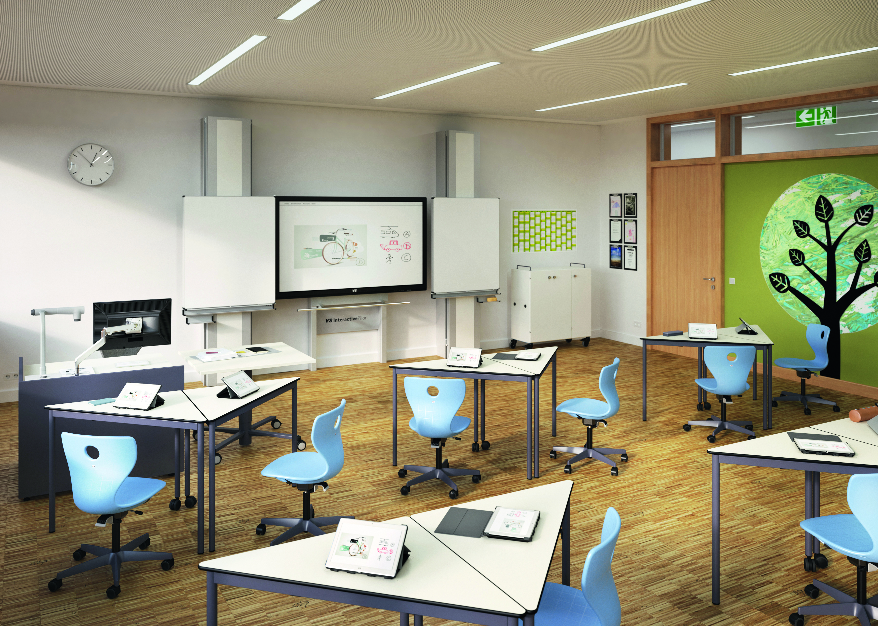 Uanset om det gælder klasselokaler, fællesområder, lærerværelser eller specialrum – vi hjælper jer fra idé til færdig levering og montering.